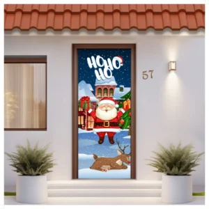 12 - Painel Retangular Natal Papai Noel em Tecido Decorativo Para Porta